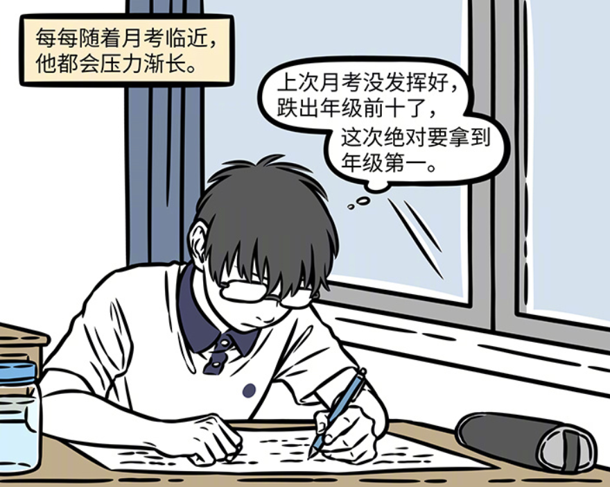 每每月考临近,十一月的压力也是逐渐增长。上一次月考没有发挥好,他跌出年级前十。正因为如此,十一月变得更加努力学习,下一次一定要考到年级第一。在学习上,十一月确实足够努力,甚至有点疯狂。