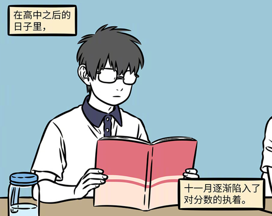 进入高中之后,十一月的学习可以说是有点疯狂。每天都在努力读书,而且逐渐陷入对分数的执着。因为从小就被认定为天才,就算高中各个学科的难度提升不少,他也没有放弃追求第一。